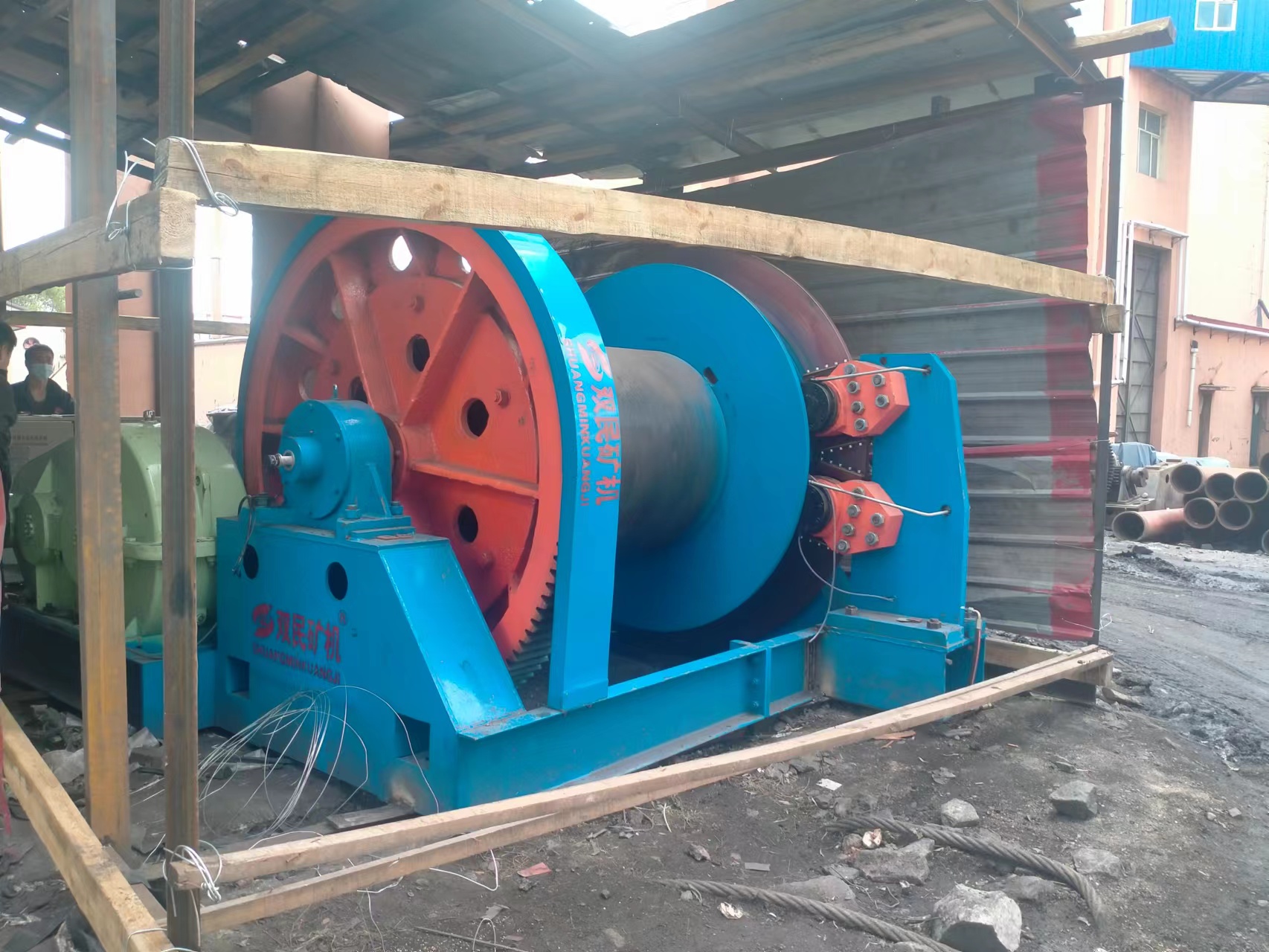 本絞車主要用于煤礦、金屬礦和非金屬礦豎井井筒掘進(jìn)時懸吊吊盤、水泵、水管、注漿泵、風(fēng)筒等掘進(jìn)設(shè)備和張緊穩(wěn)繩,該絞車系雙鋼絲繩懸吊。將減速機(jī)上的差動手把放在差動位置,若張緊穩(wěn)繩,可使兩根穩(wěn)繩的張緊力保持相等;若懸吊水管、注漿管、風(fēng)筒等管類設(shè)備,可保證其被懸吊管類設(shè)備與地面保持垂直的狀態(tài)。如果懸吊吊盤等盤狀設(shè)備,需將其差動手把放在直通位置,才能實(shí)現(xiàn)兩繩繩速的一致。